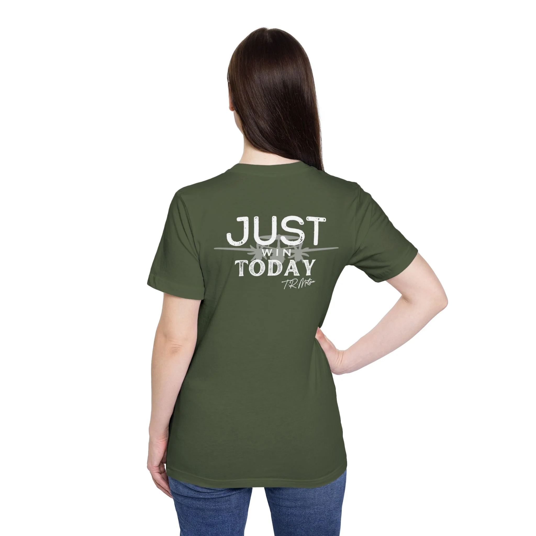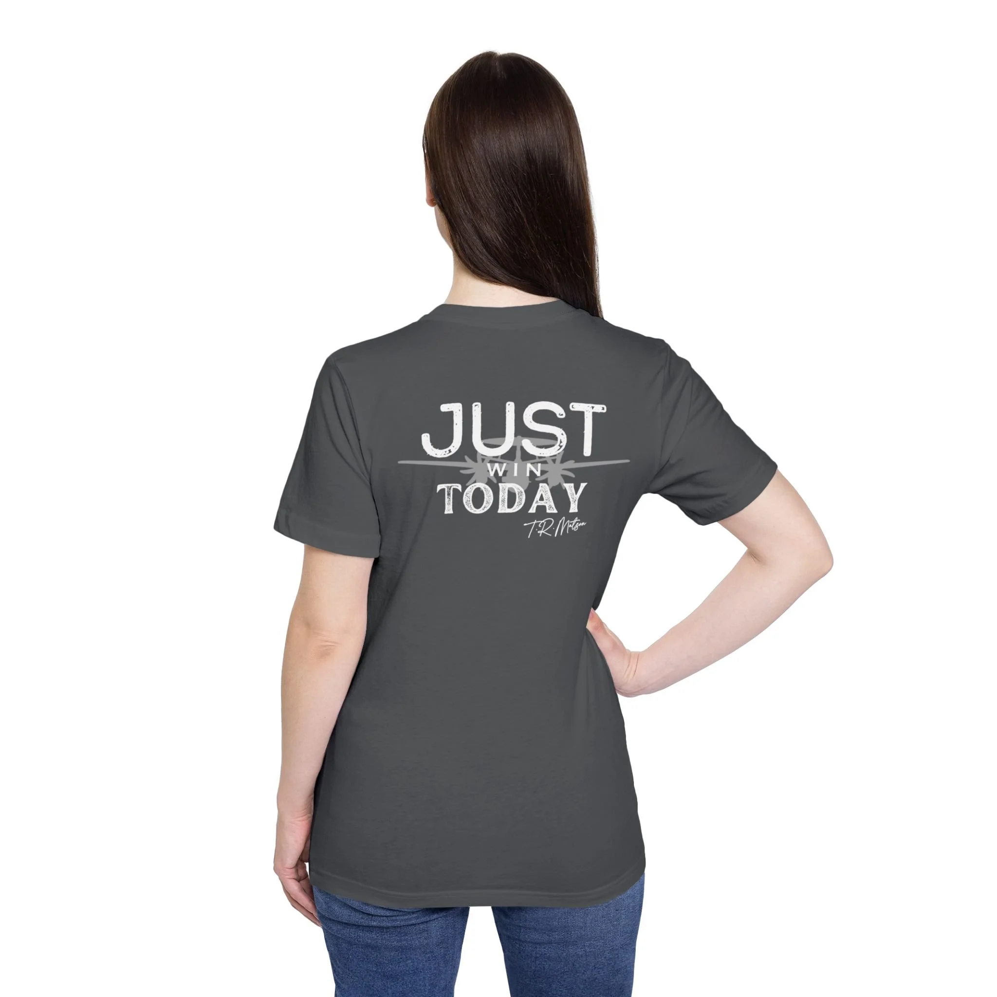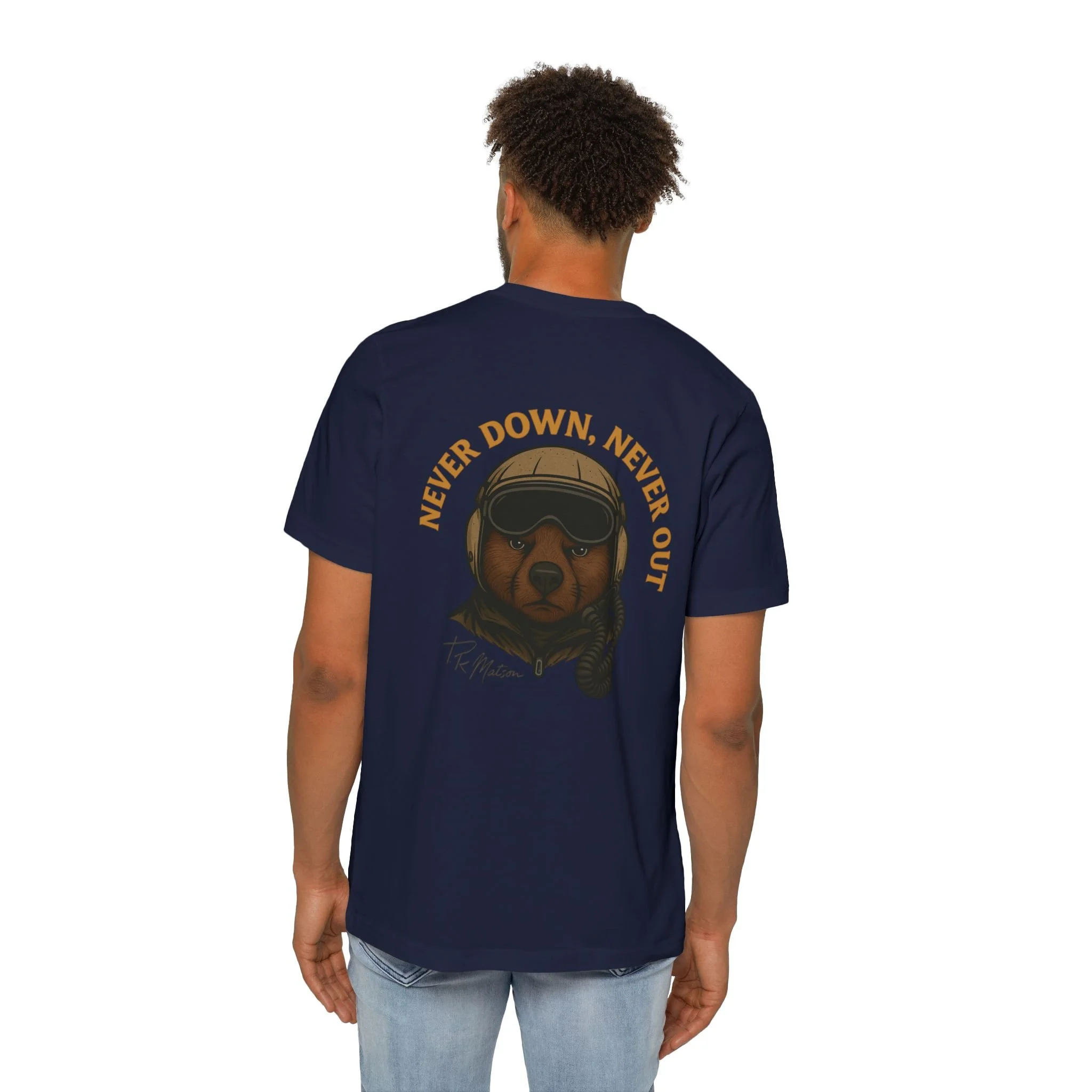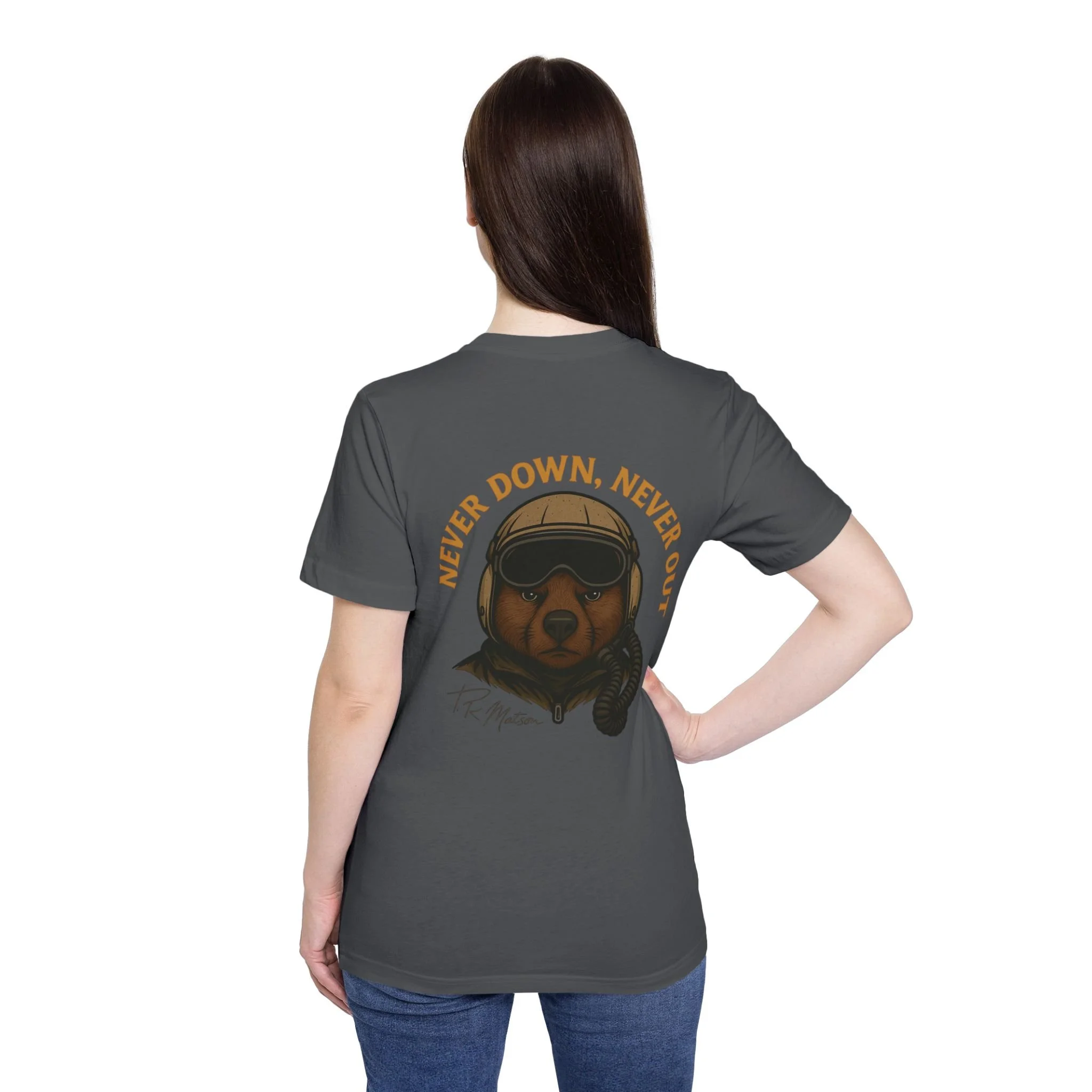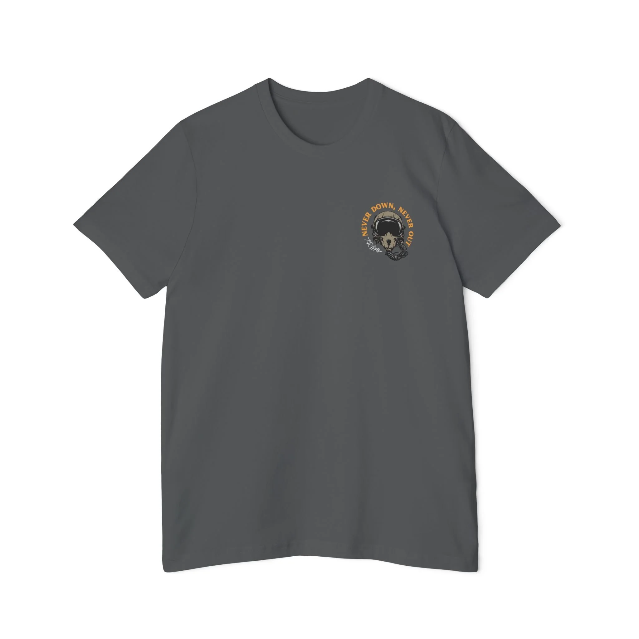 Featuring T.R. Matson's signature, self motivating phrase, "Never Down, Never Out."
